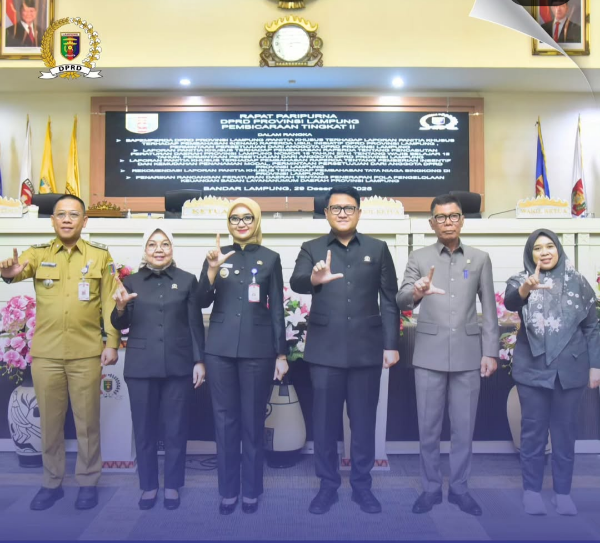 Wakil Gubernur Lampung dr. Jihan Nurlela, MM, mewakili Gubernur Lampung, menegaskan komitmen Pemerintah Provinsi Lampung untuk mempercepat pelaksanaan kebijakan dan peraturan daerah agar memberikan manfaat nyata bagi masyarakat. Provinsi Lampung juga menekankan pentingnya sinergi dan koordinasi antara pemerintah daerah dan DPRD dalam setiap perencanaan dan pengambilan kebijakan guna mendukung pembangunan daerah serta pertumbuhan ekonomi yang berkelanjutan di Provinsi Lampung.