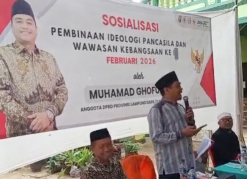 Lampung Tengah, rawasnews-tv – Ketua.com – Anggota Komisi IV DPRD Provinsi Lampung, Muhamad Ghofur, menggelar Sosialisasi Wawasan Kebangsaan dan Pembinaan Ideologi Pancasila (PIP) di Majelis Taklim Pondok Pesantren Al-Ihya, Kecamatan Kalirejo, Kabupaten Lampung Tengah, Minggu (15/02/2026).