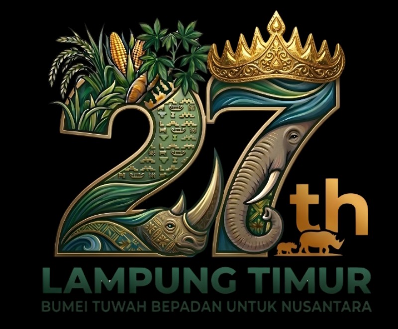 Angka “27” dalam logo ini mengandung filosofi mendalam. Tidak hanya menandai usia, tetapi juga mencerminkan kekuatan sektor agraris sebagai tulang punggung perekonomian daerah. Representasi hasil pertanian seperti padi, jagung, dan singkong menjadi simbol kemandirian pangan sekaligus potensi unggulan yang terus dikembangkan masyarakat Lampung Timur.