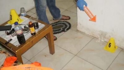 Di dalam kamar, petugas menemukan sejumlah barang bukti antara lain, botol air mineral merek Aqua yang diduga berisi minuman keras jenis anggur, minuman botol M150, obat kuat merek Kuda Liar dan Tisu Magic. Diketahui, seluruh barang pribadi milik korban tidak ada yang hilang. (Red)